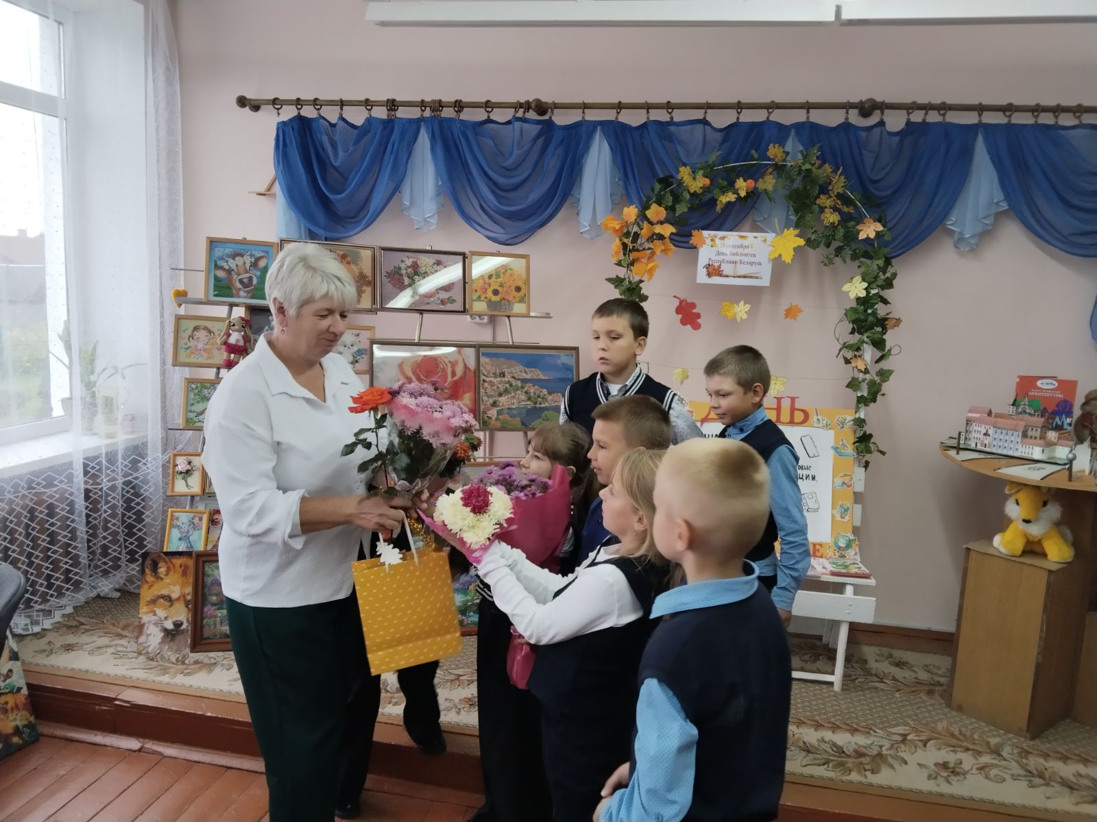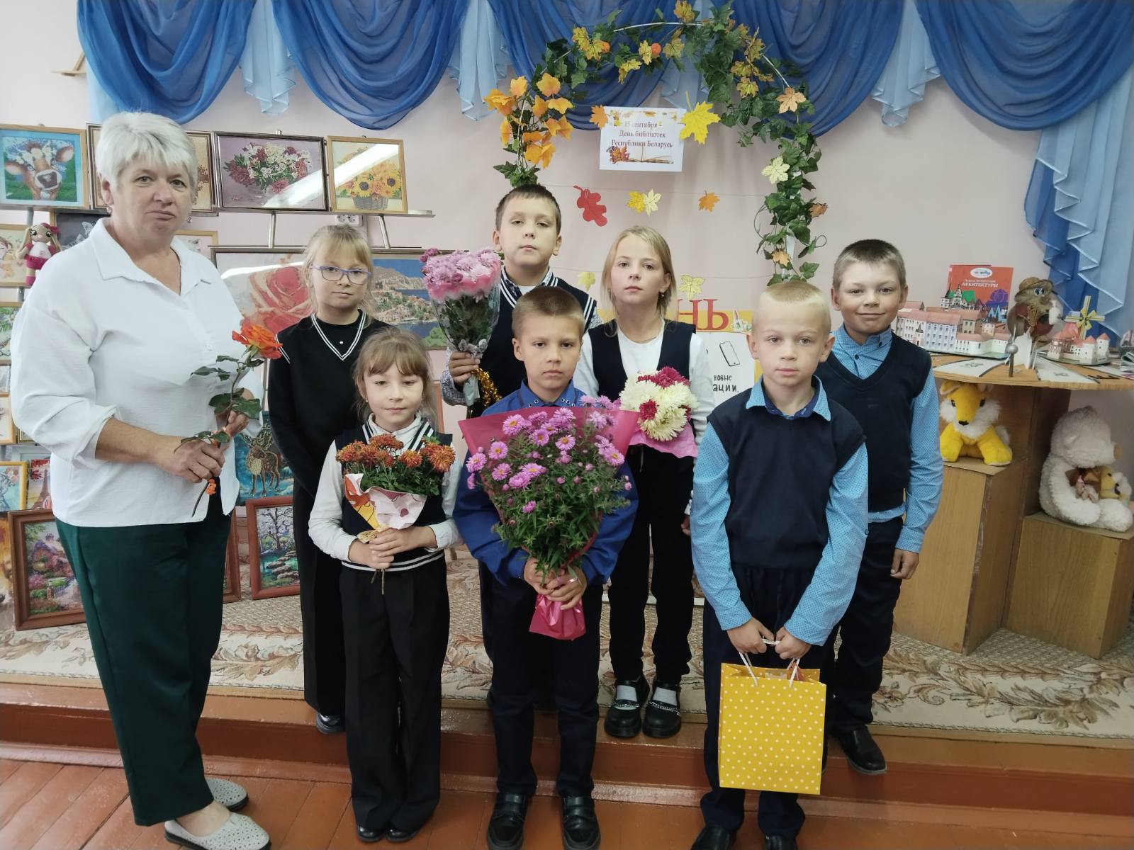 Пачаўся ўрок з самых шчырых пажаданняў. Дзеці разам са сваёй настаўніцай цёпла павіншавалі загадчыка філіялам Лісіцу І.П. з яе прафесійным святам і ўручылі прыгожыя кветкі і падарункі.