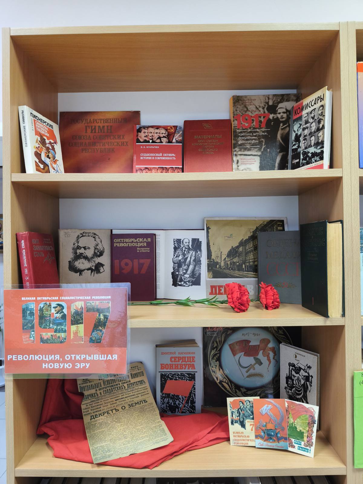 К 7 ноября в читальном зале районной центральной библиотеки оформлена книжная выставка «Революция, открывшая новую эру», на которой представлена документальная и художественная литература, наглядные материалы, посвящённые событиям 1917 года.