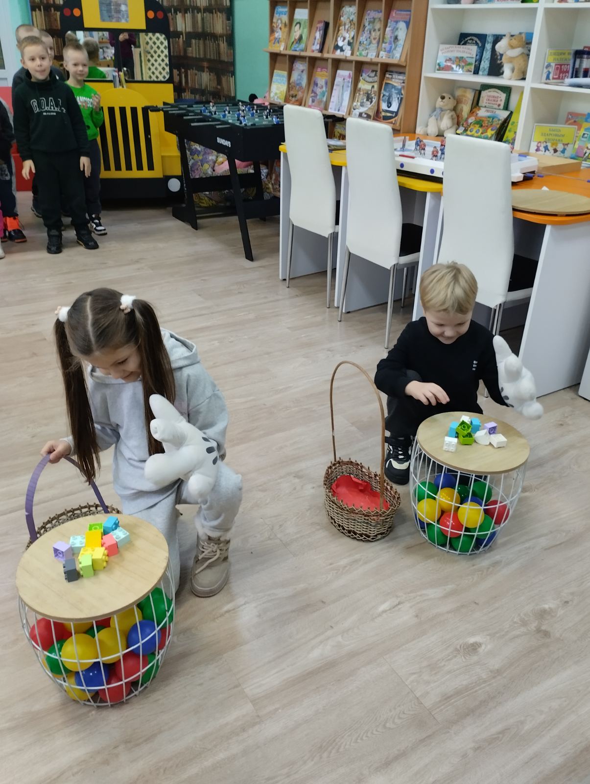 Самой азартной, пожалуй, стала игра «Разноцветный аукцион». Дошколята с восторгом вытаскивали из волшебной корзиночки разноцветные шарики и наперебой называли полезные продукты того же цвета! Красный – яблоко, помидор, перец; желтый – апельсин, лимон, тыква; зеленый – огурец, капуста, кабачок! Фантазии не было границ!