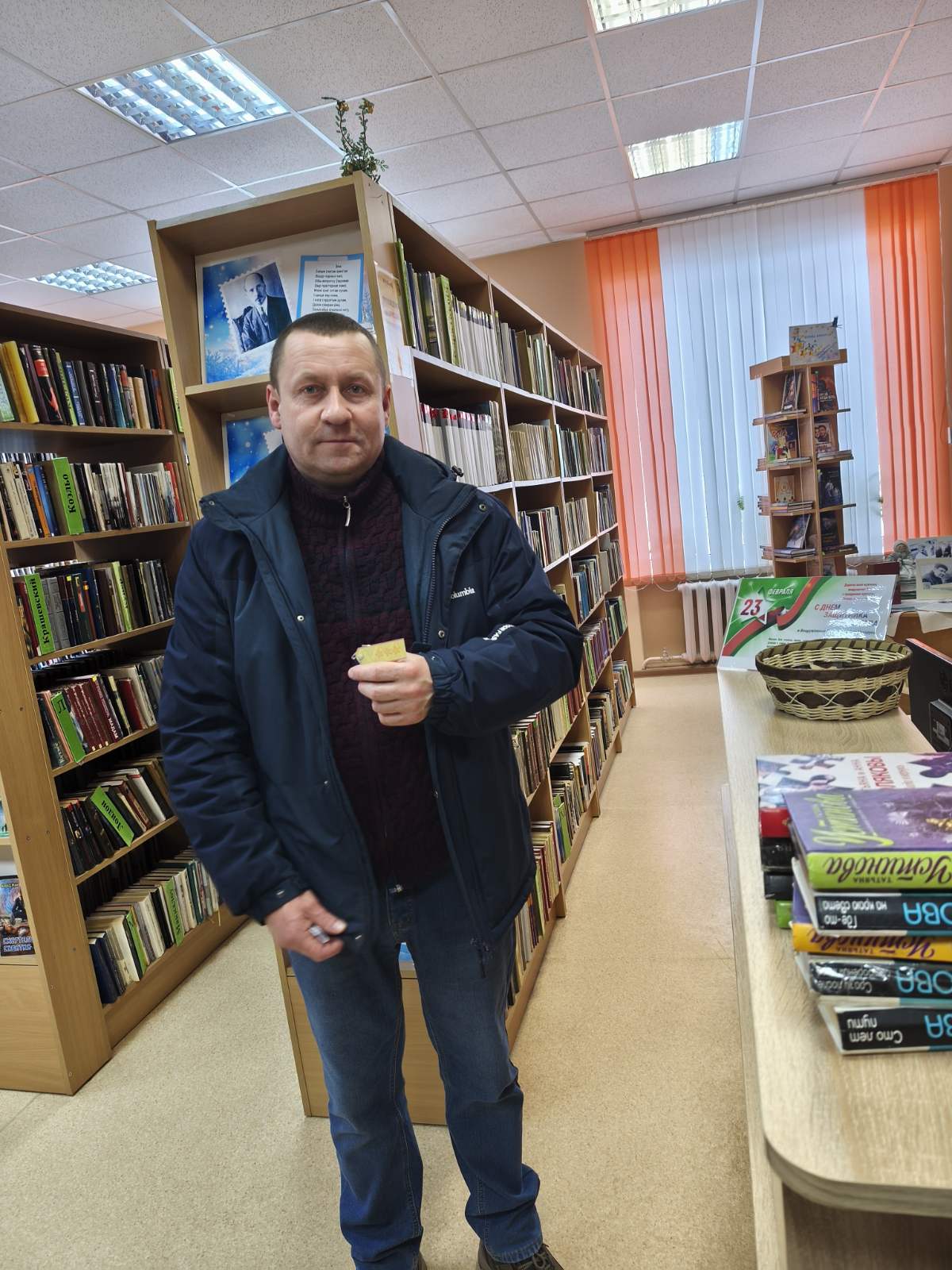 Каждому представителю сильной половины человечества, пришедшему в эти дни за книгой, библиотекари адресовали искренние слова поздравлений и благодарности за мужество, силу духа и защиту и вручали им небольшой сладкий сюрприз. Этот символический знак внимания стал приятным дополнением к выбранной литературе и, судя по улыбкам читателей, подарил им массу положительных эмоций.