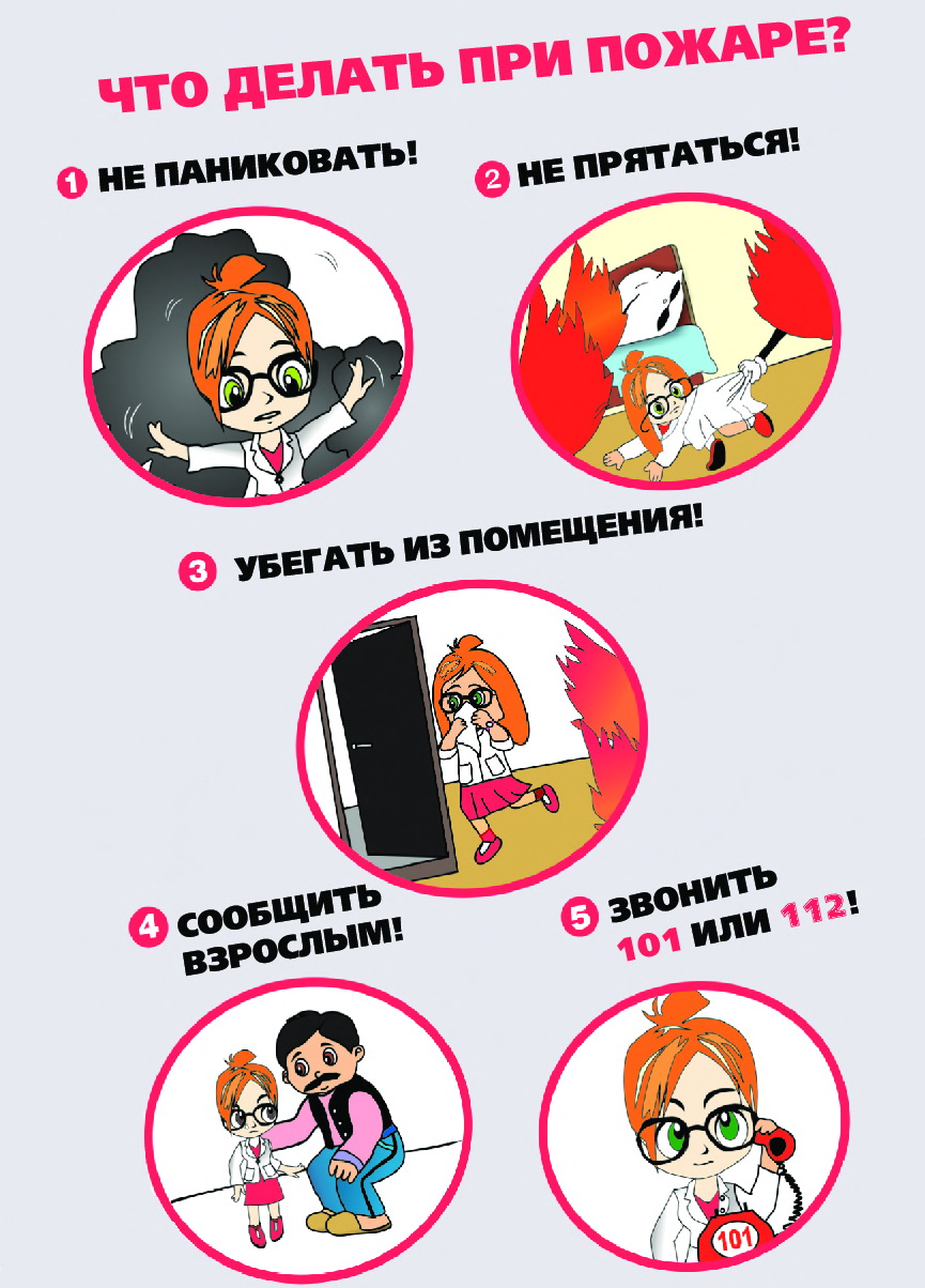 - никогда не прятаться, а немедленно покинуть горящее помещение;