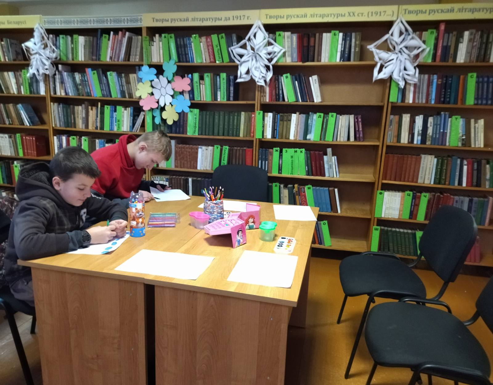 В преддверии праздника ребята, проявляя фантазию и старание, погрузились в увлекательный процесс создания поздравительных открыток. Но встреча не ограничилась одним лишь творчеством. Библиотекарь Харлинская С.В. подготовила для школьников познавательный рассказ о том, как зовут главного зимнего волшебника в разных странах мира, и указала на внешние отличия нашего Деда Мороза от Санта-Клауса.