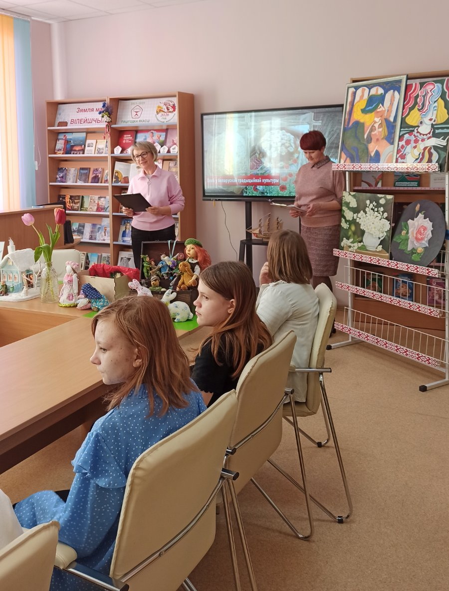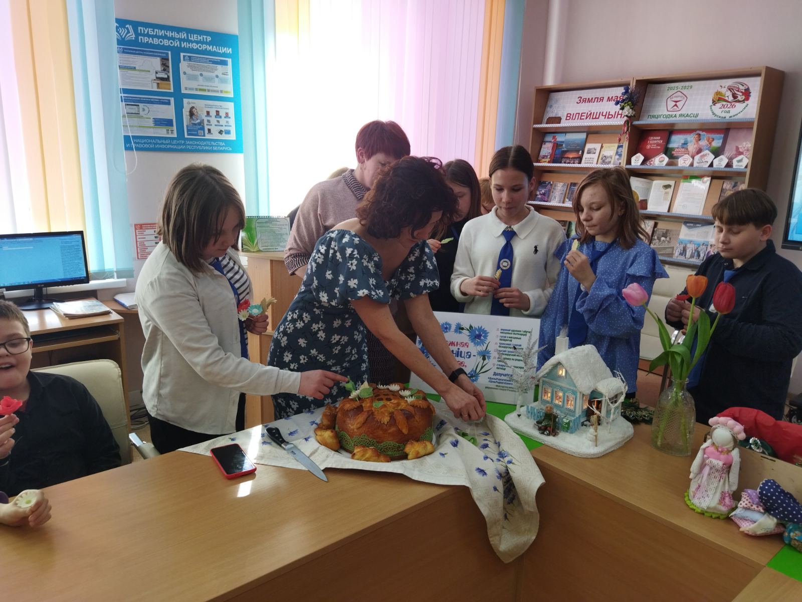 6 сакавіка ў аддзеле абслугоўвання і інфармацыі раённай цэнтральнай бібліятэкі адбылося чарговае мерапрыемства ў рамках нацыянальнага праекта «Кожная пятніца – роднае, сваё». Гасцей чакалі дэгустацыя навінкі Вілейскага хлебазавода – хлеба «Дар зямлі» з фіялетавай пшаніцы – і віктарына «Духмяныя выслоўі». Бібліятэкар прапанавала ўдзельнікам мерапрыемства невялікі пазнавальны экскурс «Хлеб у беларускай традыцыйнай культуры». Самым яркім момантам стала сустрэча з майстрам караваяў з г. Маладзечна Аленай Парасевіч. Алена расказала пра сваё рамяство, падзялілася невялікімі сакрэтамі хлебапячэння з гасцямі мерапрыемства. Майстрыха прыехала да нас з прыгожым і вельмі смачным караваем, які ўсе прысутныя з задавальненнем пакаштавалі. Таксама Алена прывезла свае карціны і цудоўныя цацкі з ваты, пап’е-машэ, палімернай гліны – яшчэ адно яе хобі.
