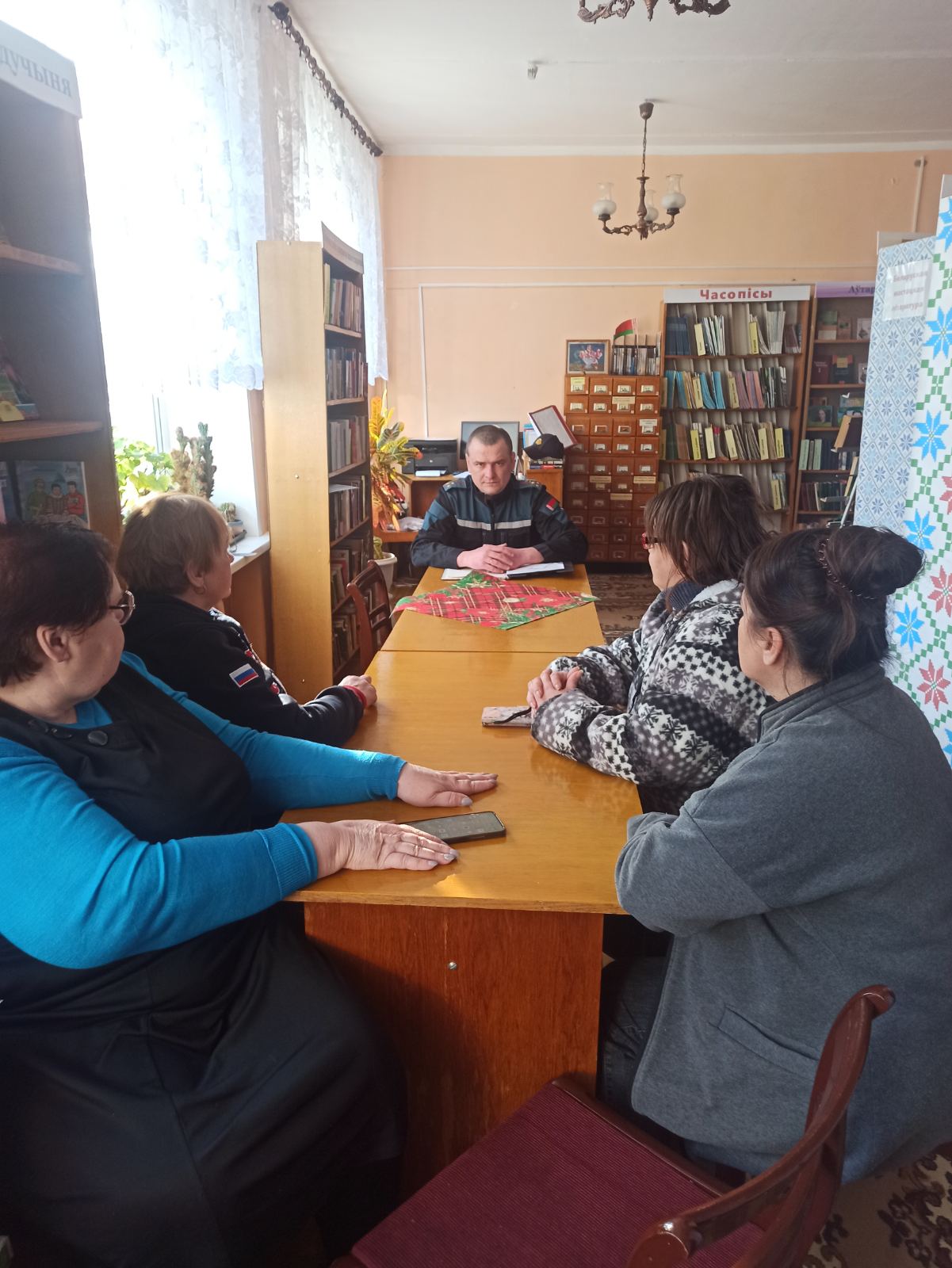 В рамках республиканской профилактической акции «За безопасность вместе», которая проходит в Беларуси со 2 по 18 марта, в Нарочанской сельской библиотеке прошел круглый стол «Как не стать жертвой огня», на котором присутствовал старший лейтенант МЧС Гиль Александр Владимирович.