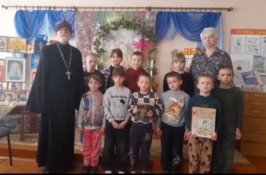 На мероприятие был приглашен настоятель Свято-Троицкой церкви в аг. Долгиново отец Иоанн Линник. Он рассказал детям удивительную историю о создании славянской азбуки святыми равноапостольными Кириллом и Мефодием и поделился знаниями о древних монастырях, в которых переписывались и сохранялись бесценные рукописи.