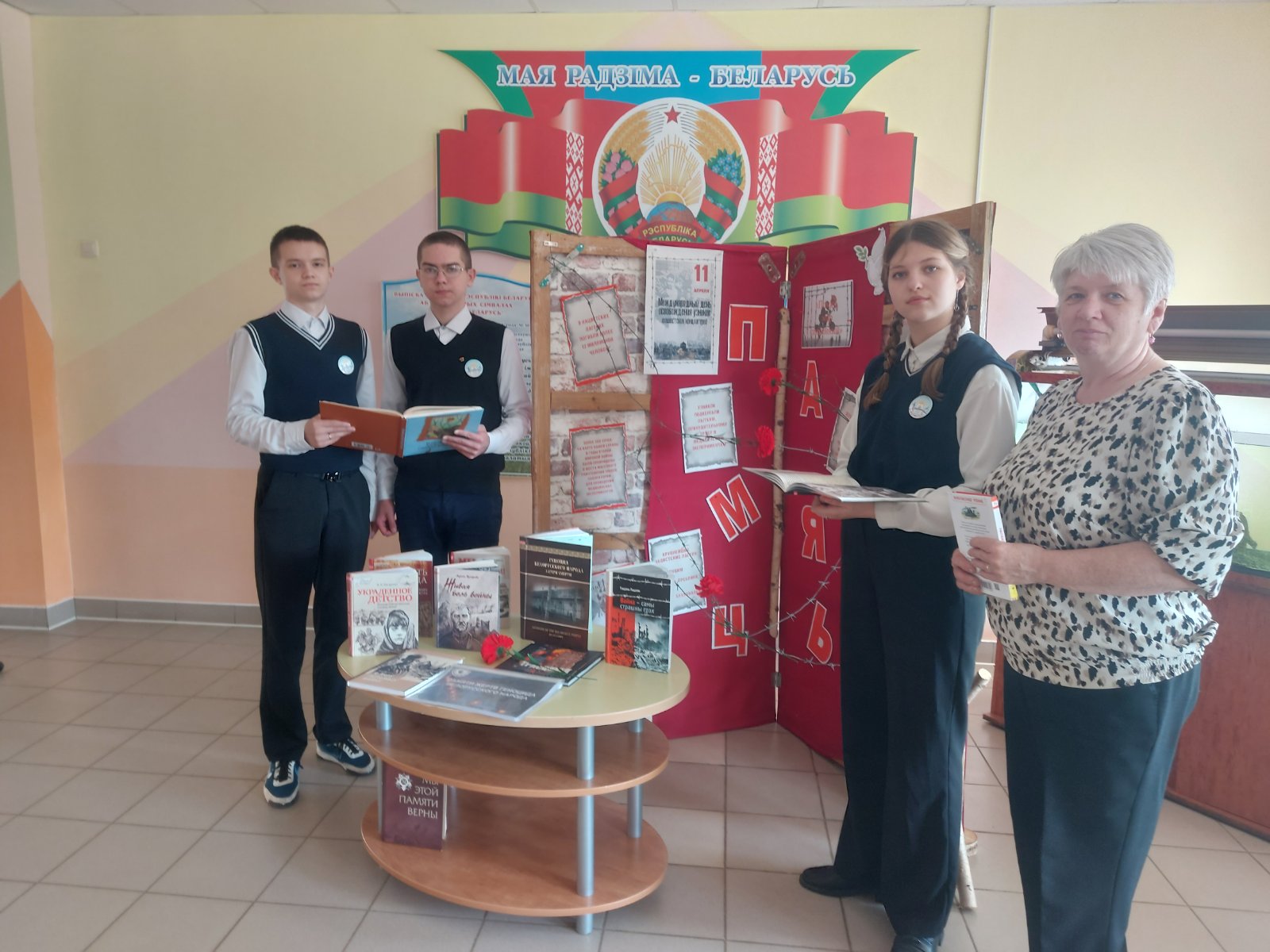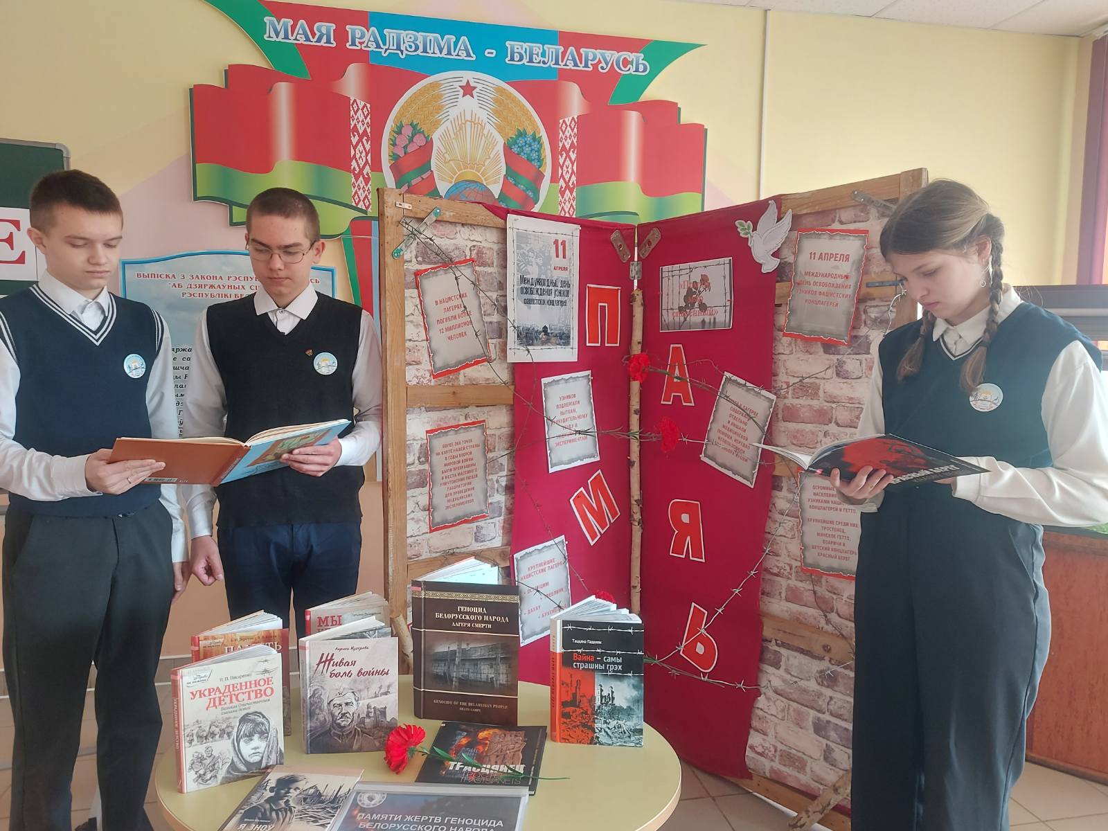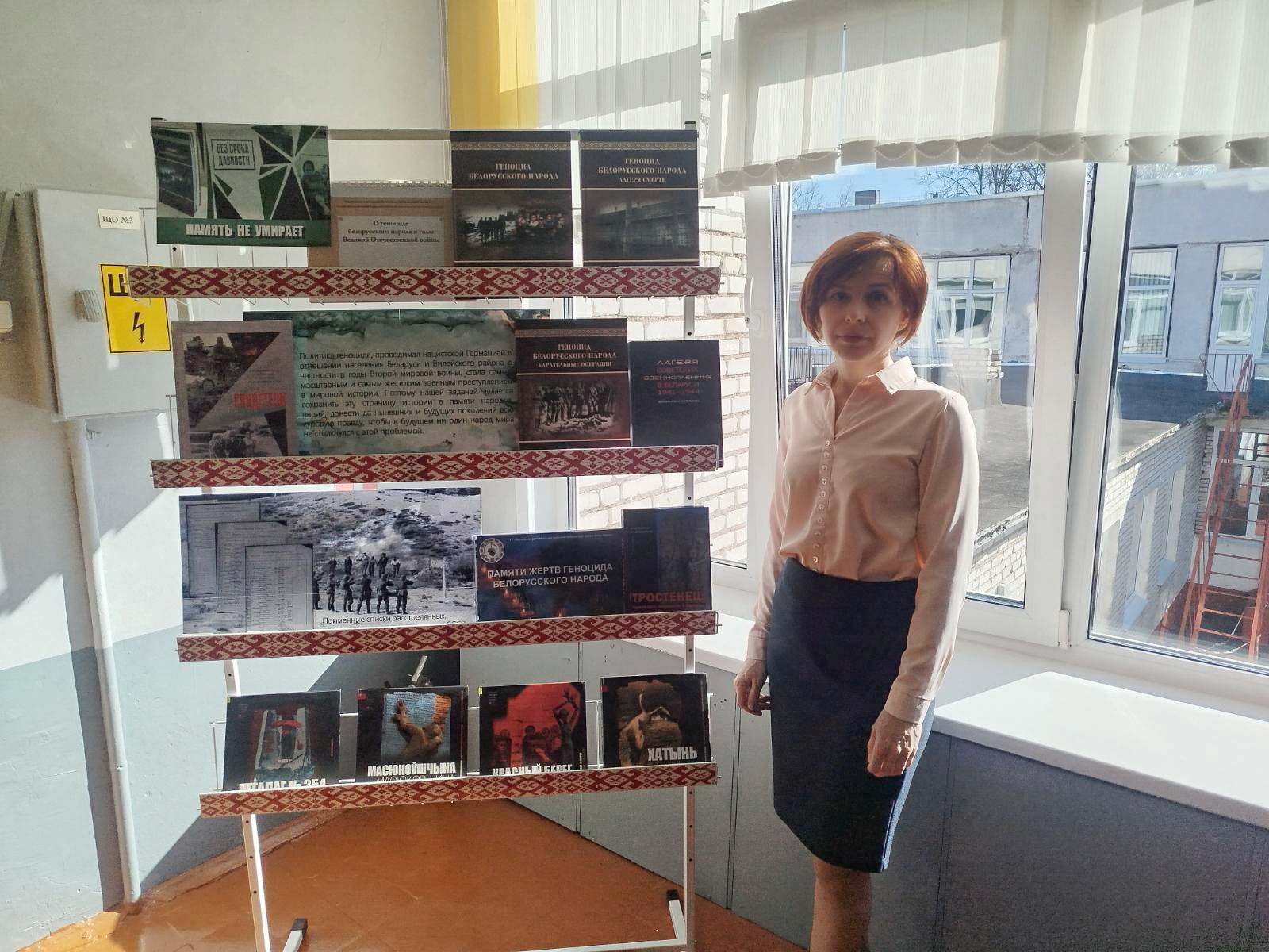 Библиотекарь Августинович О.С. подготовила для юных читателей подборку литературы, которая никого не оставила равнодушным. Среди представленных изданий – документальные сборники и книги, основанные на реальных свидетельствах очевидцев: «Красный берег», «Без срока давности», «Последние свидетели», «Геноцид белорусского народа. Лагеря смерти» и др. Эти книги раскрывают трагические страницы истории, рассказывая об уничтожении людей в лагерях смерти и о мужестве тех, кто выжил в нечеловеческих условиях.