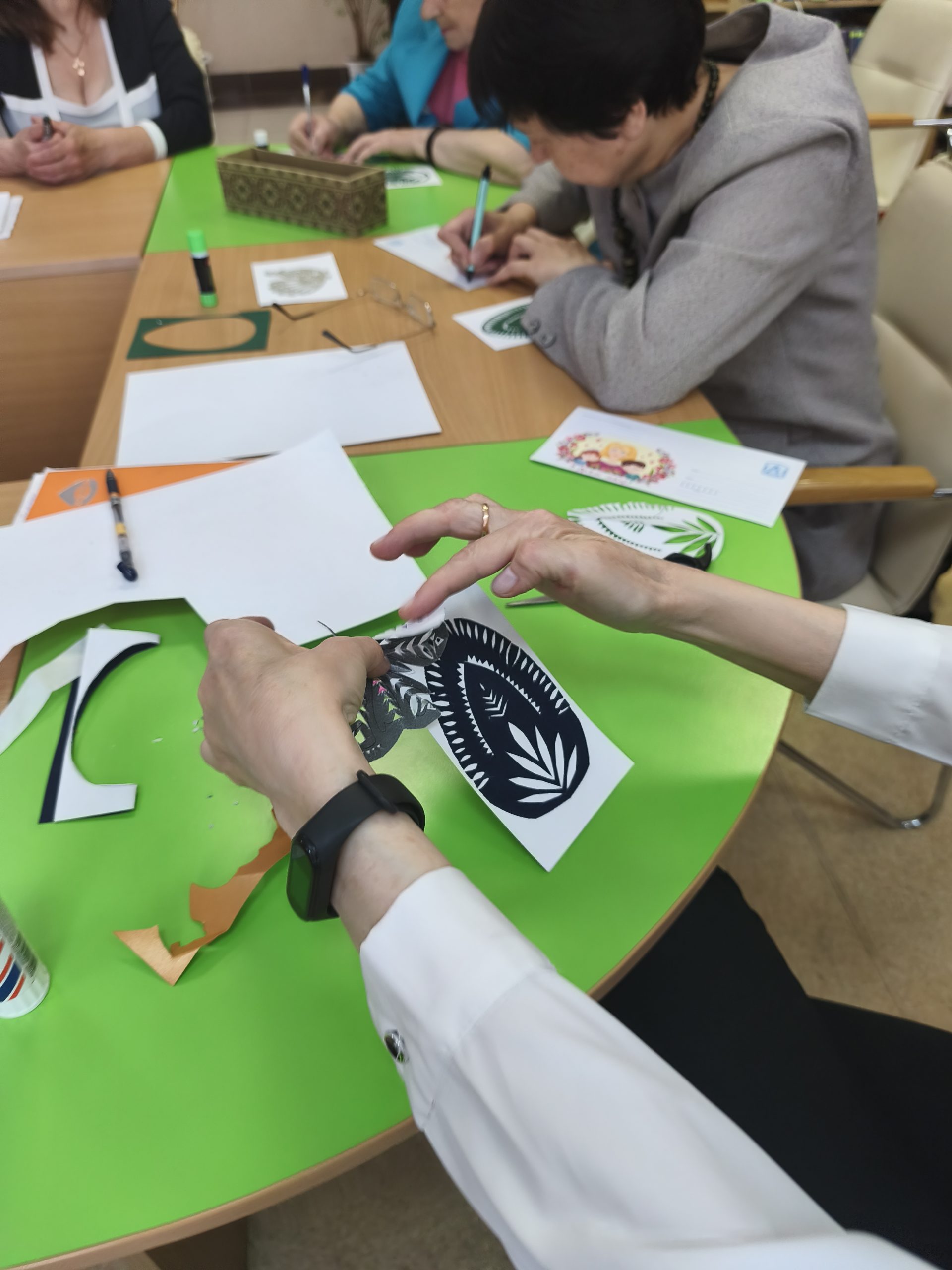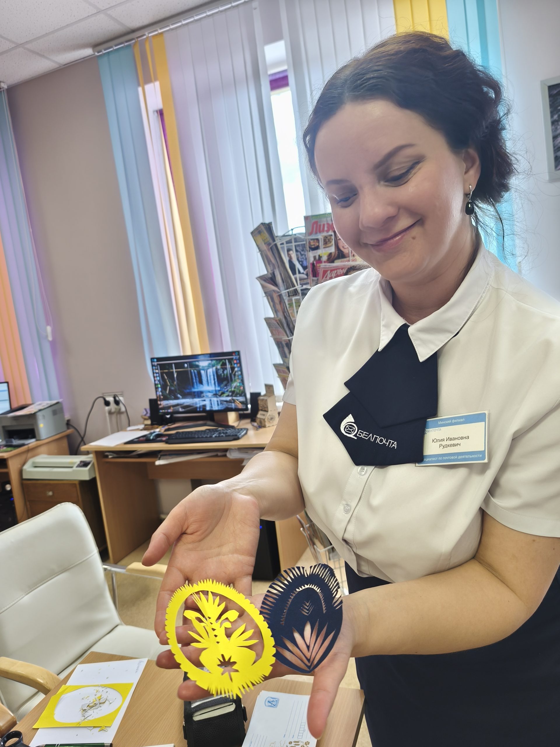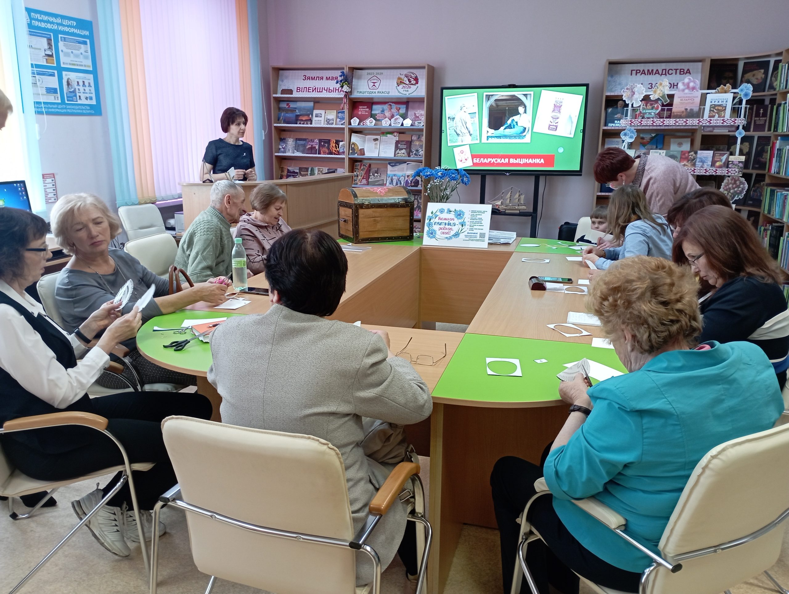 Открыл праздничную программу познавательный экскурс в историю возникновения вытинанки – древнейшего вида декоративно-прикладного искусства вырезания из бумаги. Вдохновившись историей, гости с удовольствием приняли участие в мастер-классе по изготовлению вытинанки, где под руководством заведующего отделом обслуживания и информации Виктории Евгеньевны Бохан участники не просто осваивали азы этого изящного ремесла, но и создавали авторские открытки. Тут же, при содействии сотрудника РУП «Белпочта» Юлии Ивановны Рудкевич, они подписывали и отправляли готовые шедевры своим друзьям и близким в любую точку Беларуси.