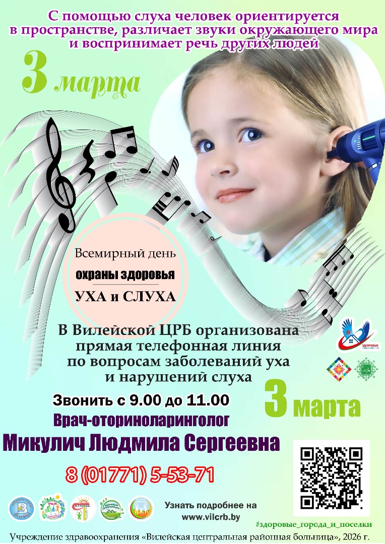 Всемирный день слуха является ежегодным событием, проводимым 3 марта под эгидой Всемирной здравоохранительной организации (ВЗО). Цель этого дня — привлечение внимания к проблемам слуха, предупреждение потери слуха и пропаганда здоровья слуха.
